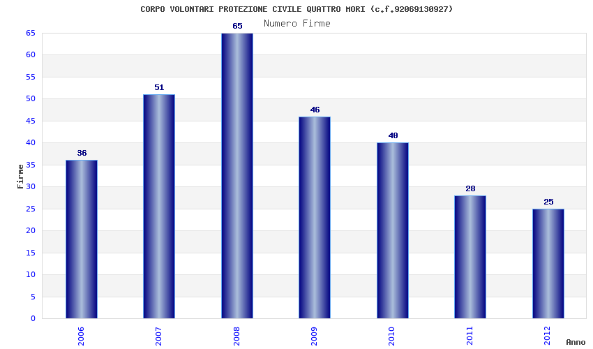 | Anno | Firme | Importi | Media | Naz. | Reg. | Prov. | Comu. |