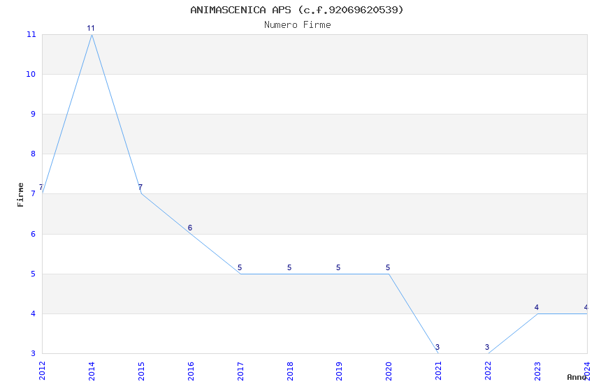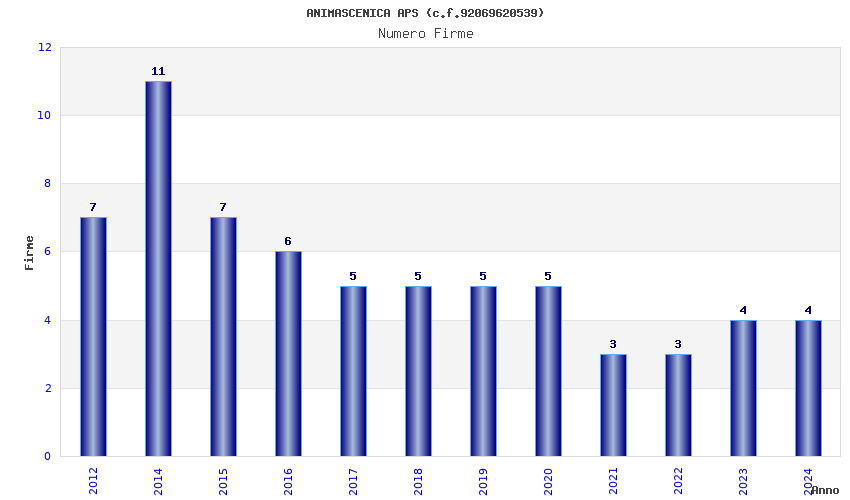 | Anno | Firme | Importi | Media | Naz. | Reg. | Prov. | Comu. |