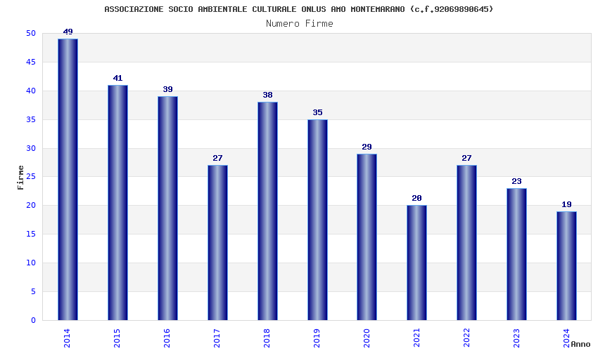 | Anno | Firme | Importi | Media | Naz. | Reg. | Prov. | Comu. |