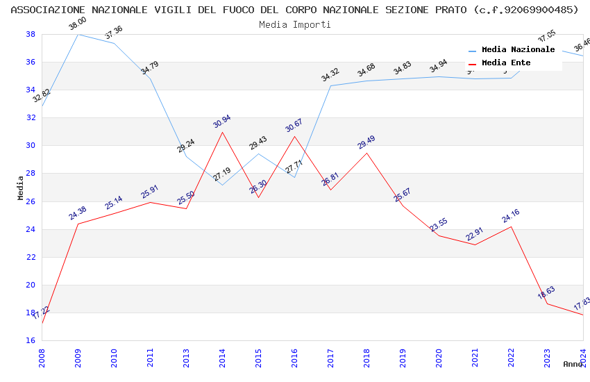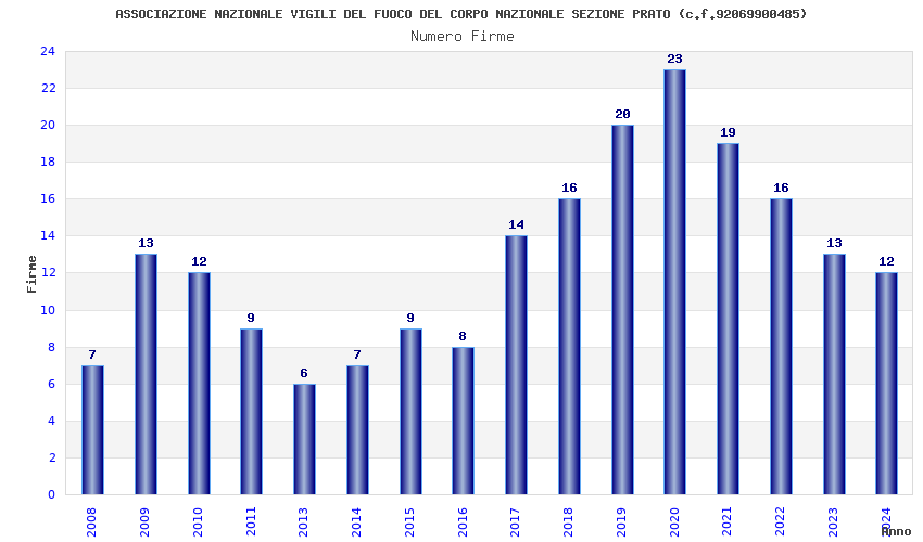 | Anno | Firme | Importi | Media | Naz. | Reg. | Prov. | Comu. |