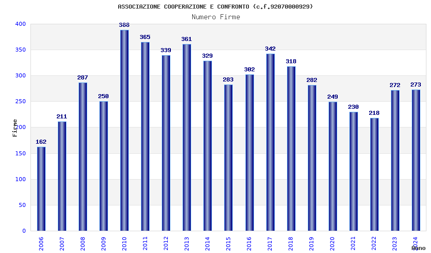 Anno Firme Importi Media Naz. Reg. Prov. Comu.