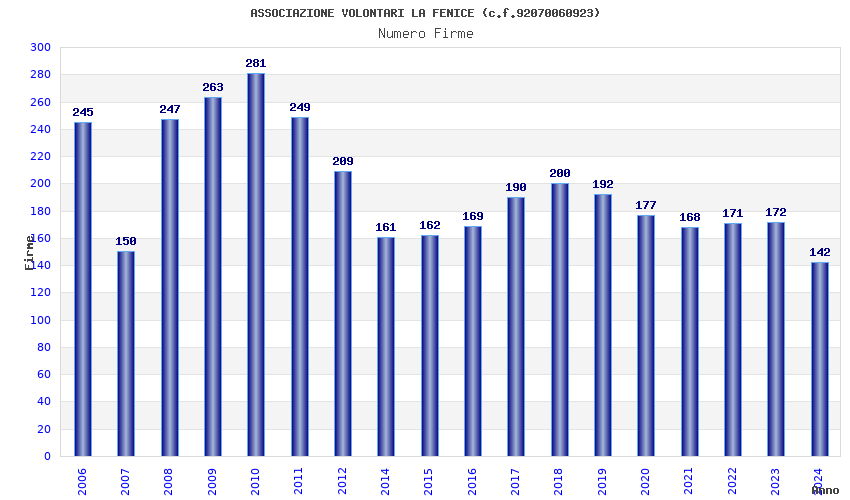 Anno Firme Importi Media Naz. Reg. Prov. Comu.