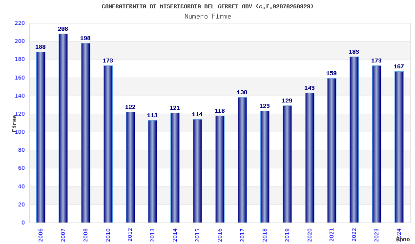 | Anno | Firme | Importi | Media | Naz. | Reg. | Prov. | Comu. |