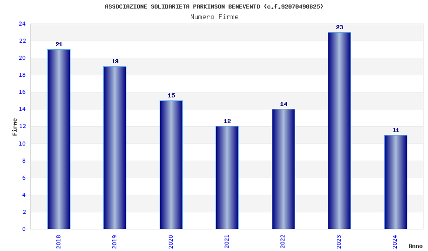 | Anno | Firme | Importi | Media | Naz. | Reg. | Prov. | Comu. |