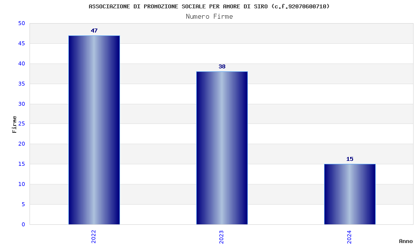| Anno | Firme | Importi | Media | Naz. | Reg. | Prov. | Comu. |
