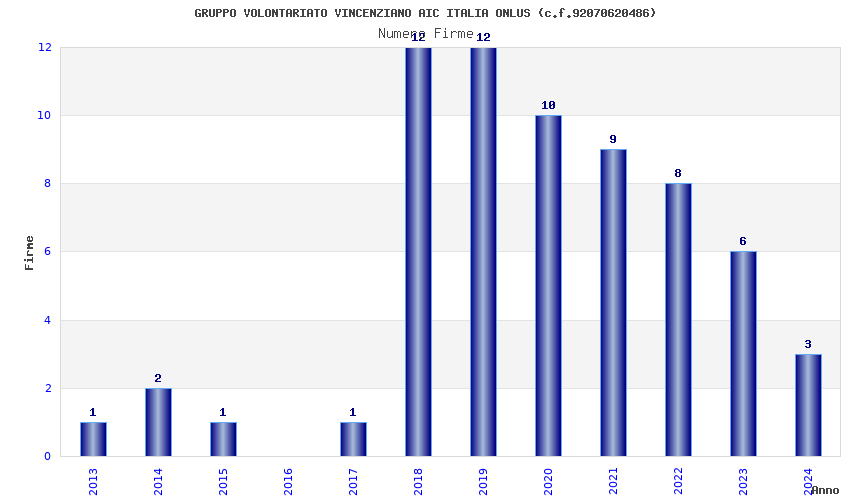 | Anno | Firme | Importi | Media | Naz. | Reg. | Prov. | Comu. |