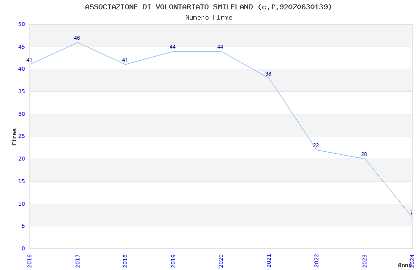 | 2016 | 41 | 933,94 | 22,78 | 33.849 | 7.343 | 327 | 7 |
