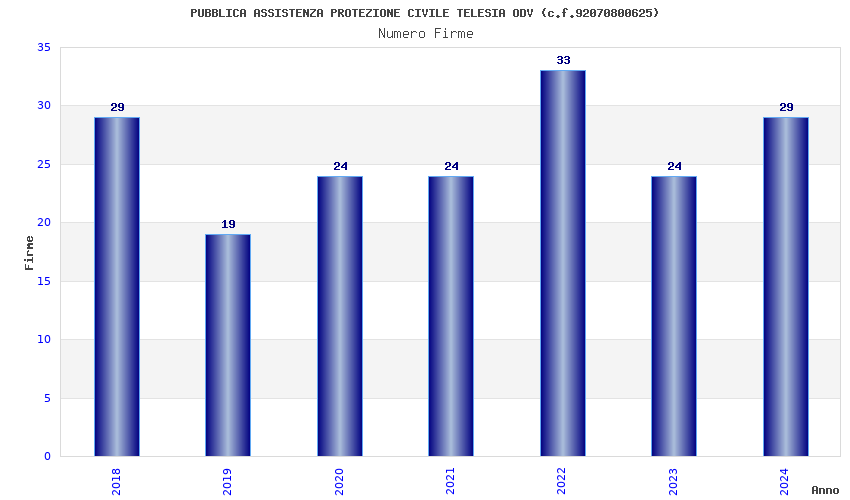 | Anno | Firme | Importi | Media | Naz. | Reg. | Prov. | Comu. |