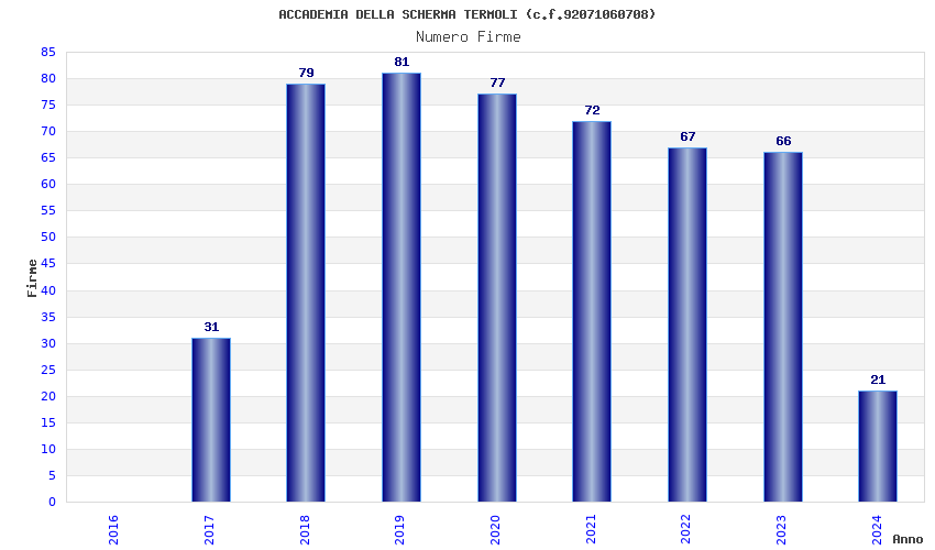 | Anno | Firme | Importi | Media | Naz. | Reg. | Prov. | Comu. |