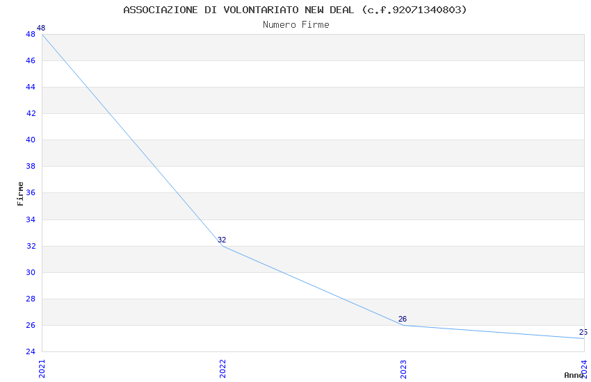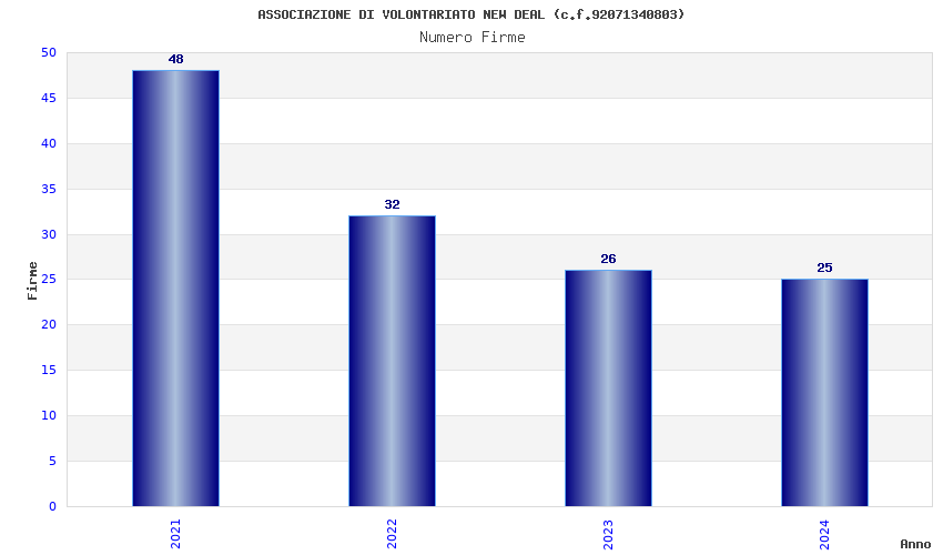| Anno | Firme | Importi | Media | Naz. | Reg. | Prov. | Comu. |