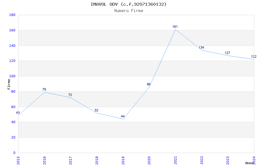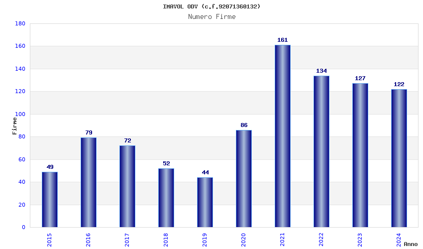 | Anno | Firme | Importi | Media | Naz. | Reg. | Prov. | Comu. |