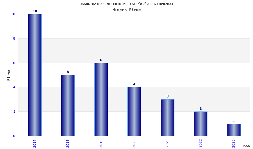 | Anno | Firme | Importi | Media | Naz. | Reg. | Prov. | Comu. |