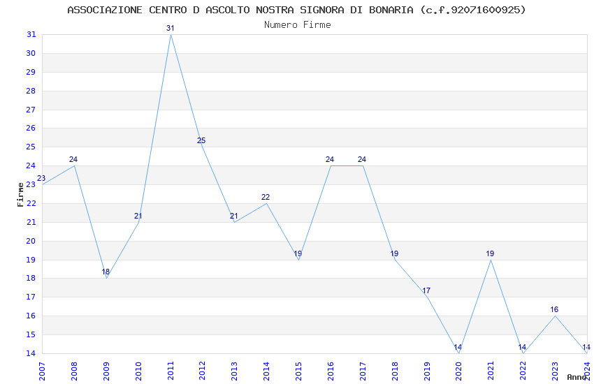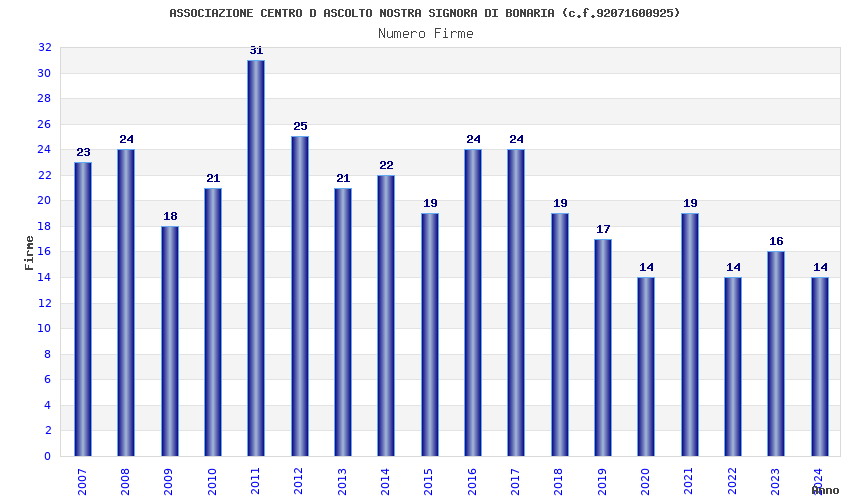 Anno Firme Importi Media Naz. Reg. Prov. Comu.