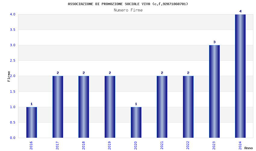 | Anno | Firme | Importi | Media | Naz. | Reg. | Prov. | Comu. |