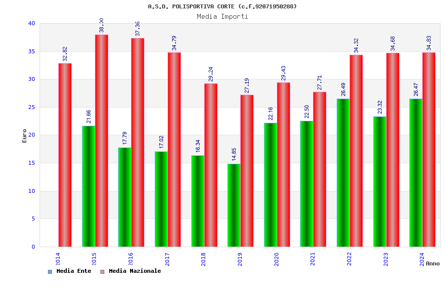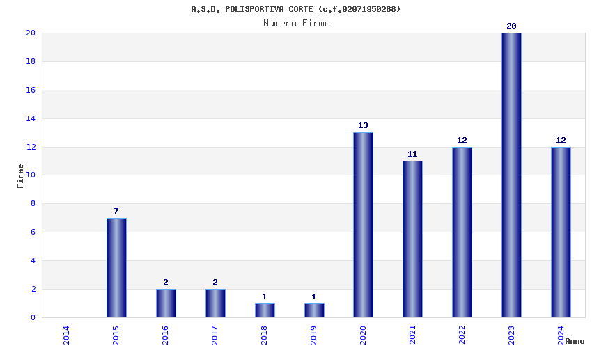 | Anno | Firme | Importi | Media | Naz. | Reg. | Prov. | Comu. |