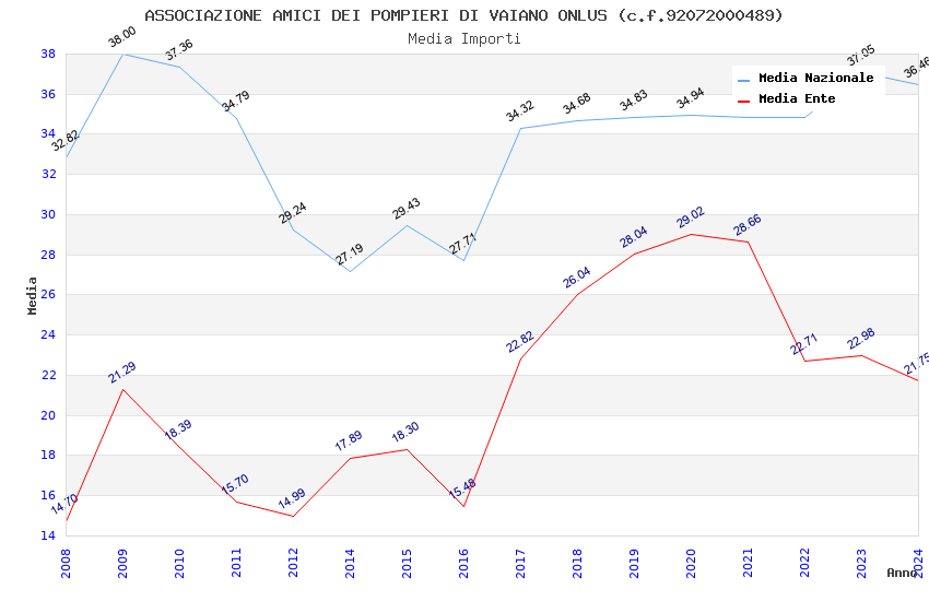 | Anno | Firme | Importi | Media | Naz. | Reg. | Prov. | Comu. |