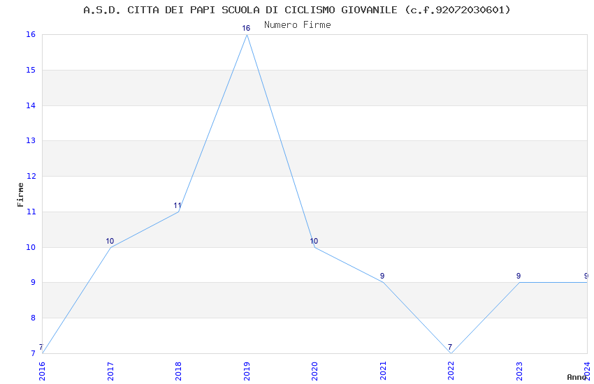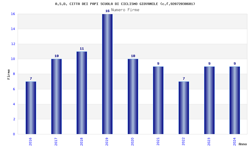 | 2019 | 16 | 560,74 | 35,05 | 44.381 | 3.860 | 229 | 12 |