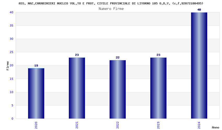 | Anno | Firme | Importi | Media | Naz. | Reg. | Prov. | Comu. |