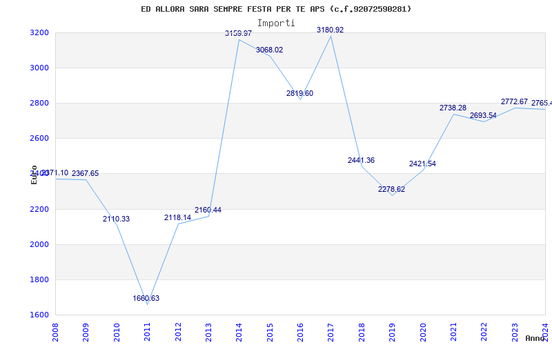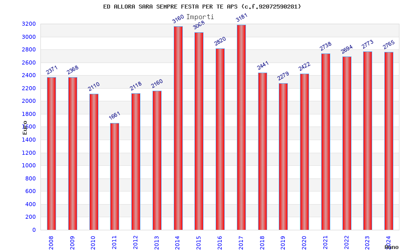 | Anno | Firme | Importi | Media | Naz. | Reg. | Prov. | Comu. |