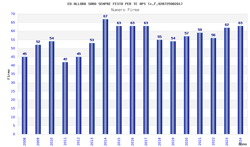 | 2014 | 67 | 3.159,97 | 47,16 | 16.002 | 1.518 | 355 | 167 |