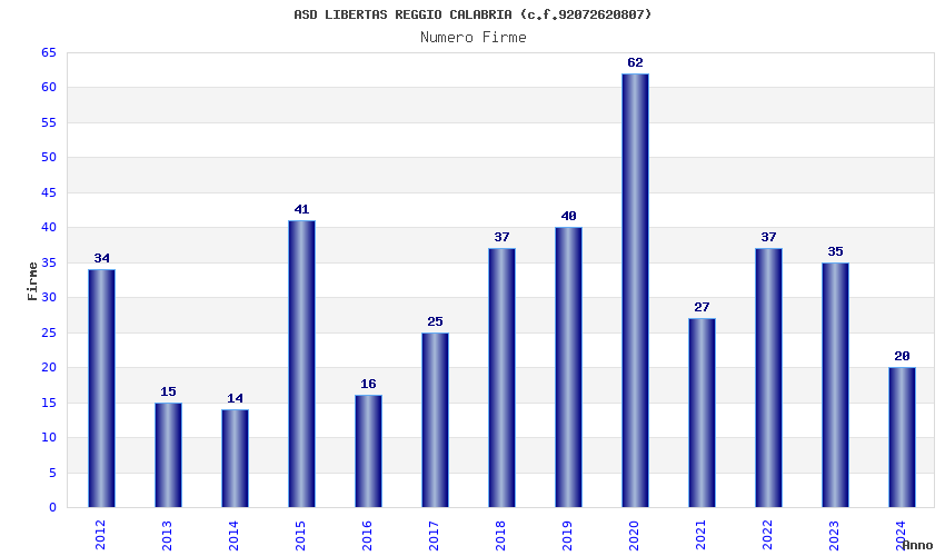 | 2020 | 62 | 1.953,25 | 31,50 | 24.765 | 507 | 159 | 73 |