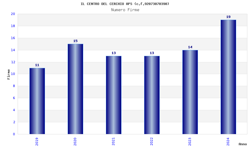 | Anno | Firme | Importi | Media | Naz. | Reg. | Prov. | Comu. |