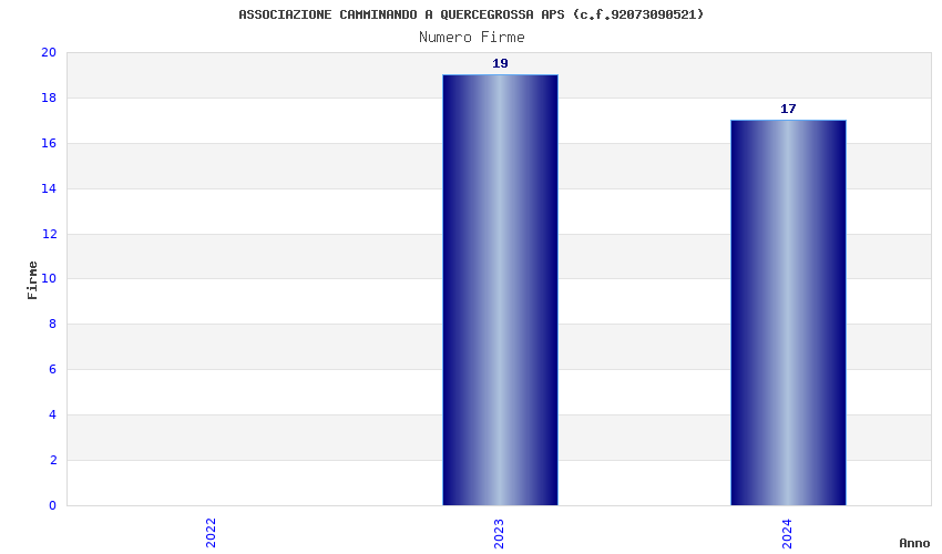 | Anno | Firme | Importi | Media | Naz. | Reg. | Prov. | Comu. |