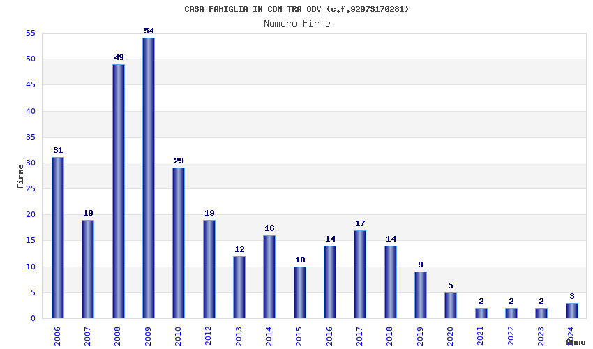 Anno Firme Importi Media Naz. Reg. Prov. Comu.