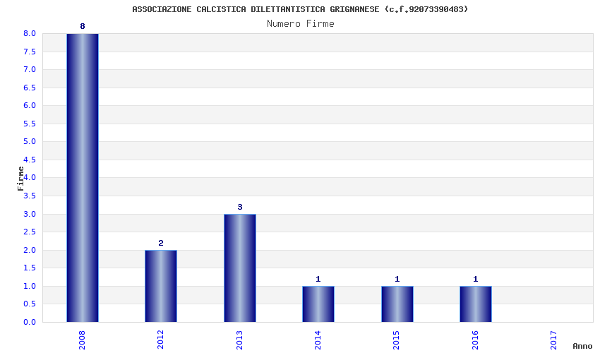 | Anno | Firme | Importi | Media | Naz. | Reg. | Prov. | Comu. |