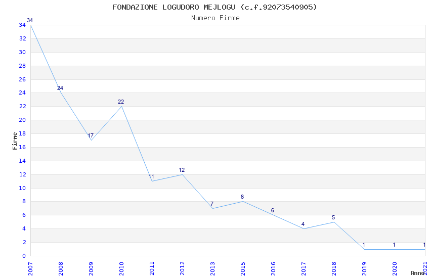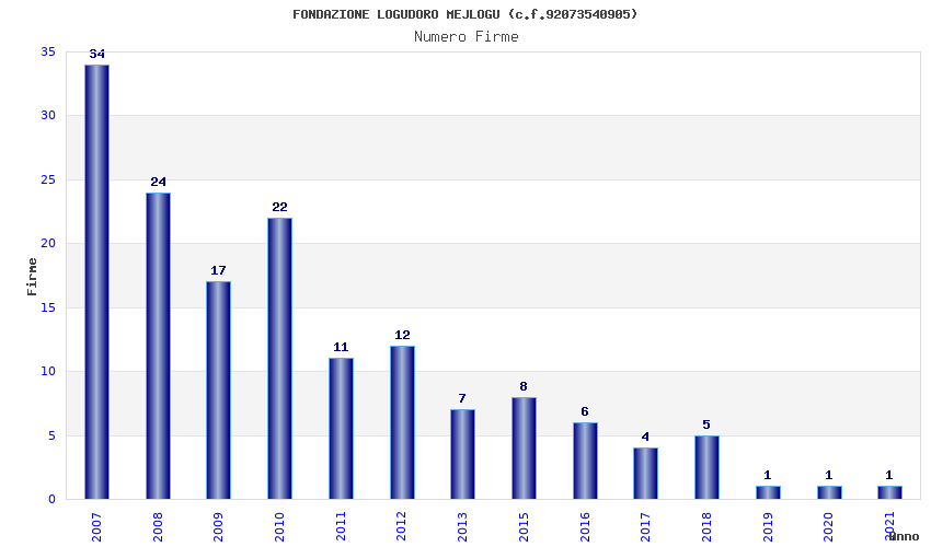 | Anno | Firme | Importi | Media | Naz. | Reg. | Prov. | Comu. |