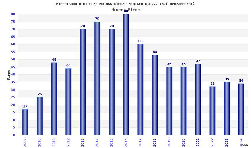 | 2016 | 80 | 1.832,57 | 22,91 | 23.994 | 1.477 | 78 | 4 |