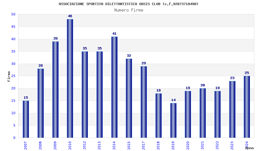 | Anno | Firme | Importi | Media | Naz. | Reg. | Prov. | Comu. |
