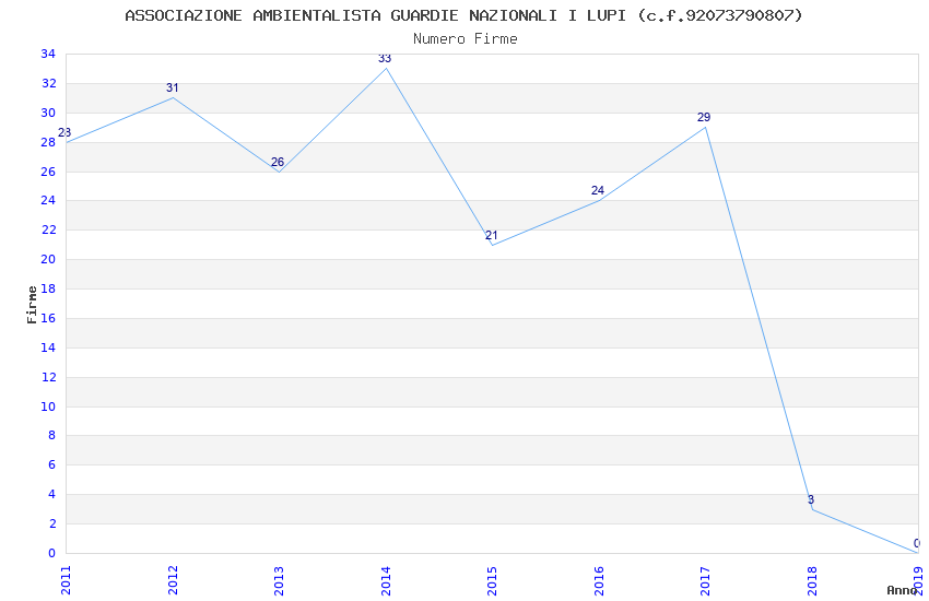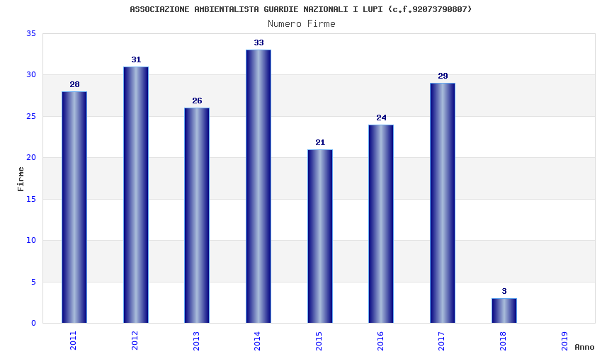 | Anno | Firme | Importi | Media | Naz. | Reg. | Prov. | Comu. |