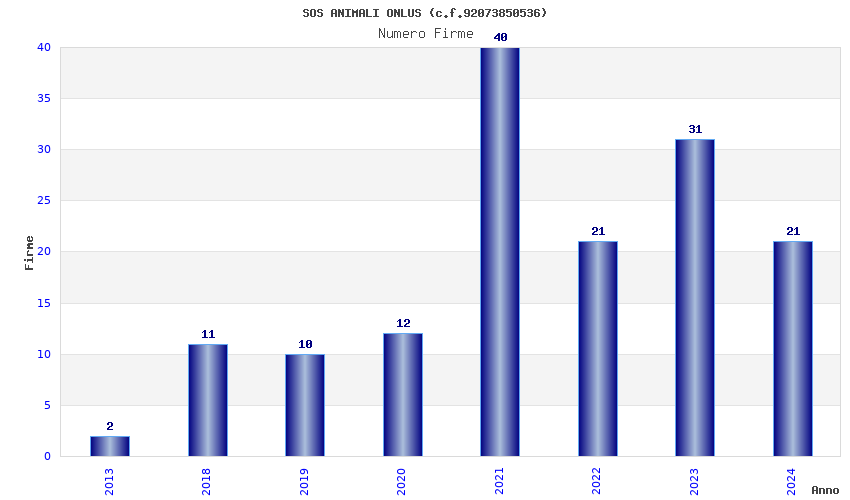 | Anno | Firme | Importi | Media | Naz. | Reg. | Prov. | Comu. |