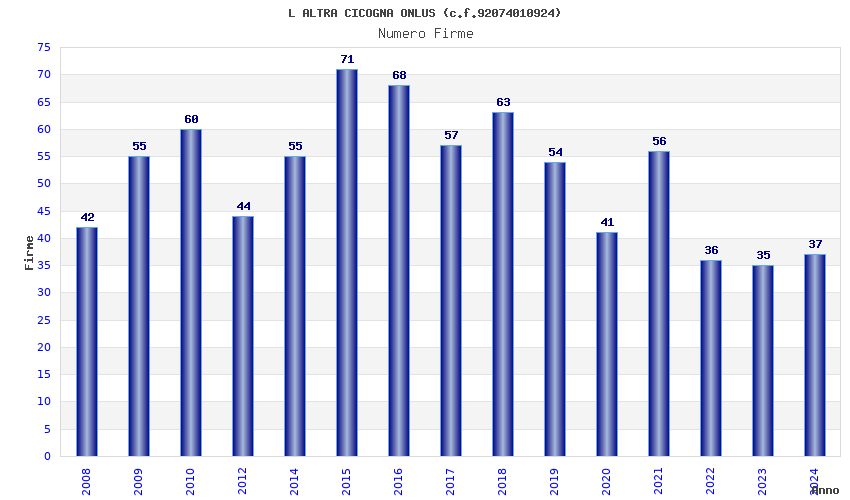 | Anno | Firme | Importi | Media | Naz. | Reg. | Prov. | Comu. |
