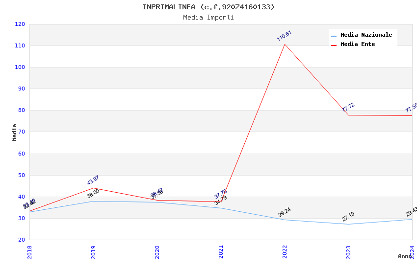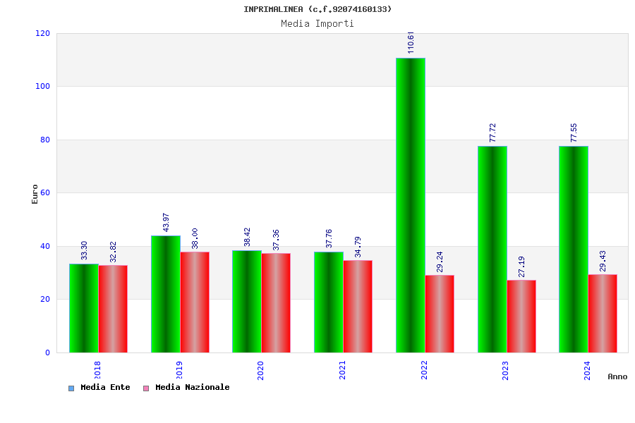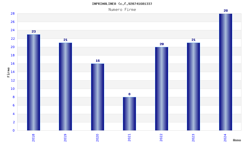 | Anno | Firme | Importi | Media | Naz. | Reg. | Prov. | Comu. |