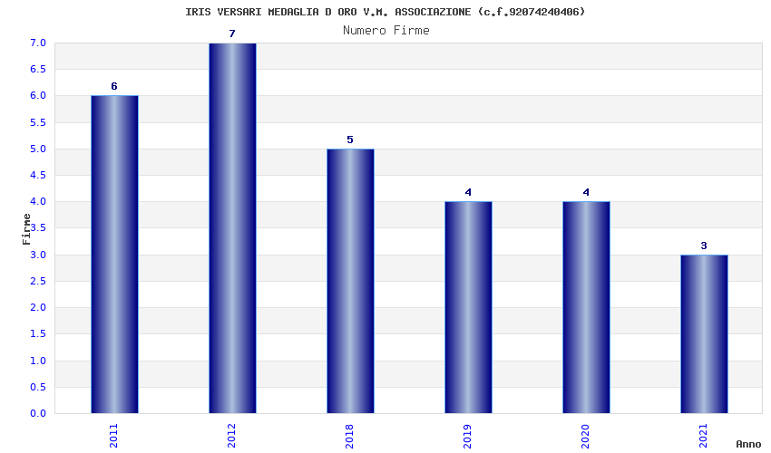 | Anno | Firme | Importi | Media | Naz. | Reg. | Prov. | Comu. |