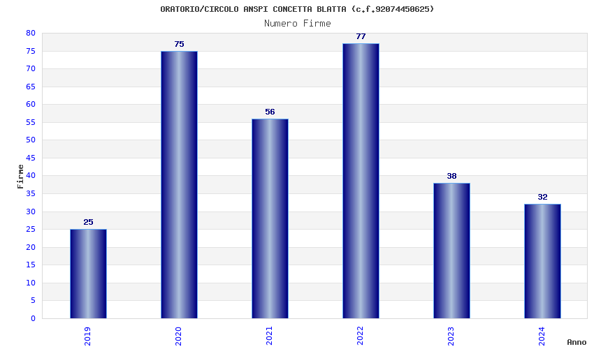 | Anno | Firme | Importi | Media | Naz. | Reg. | Prov. | Comu. |