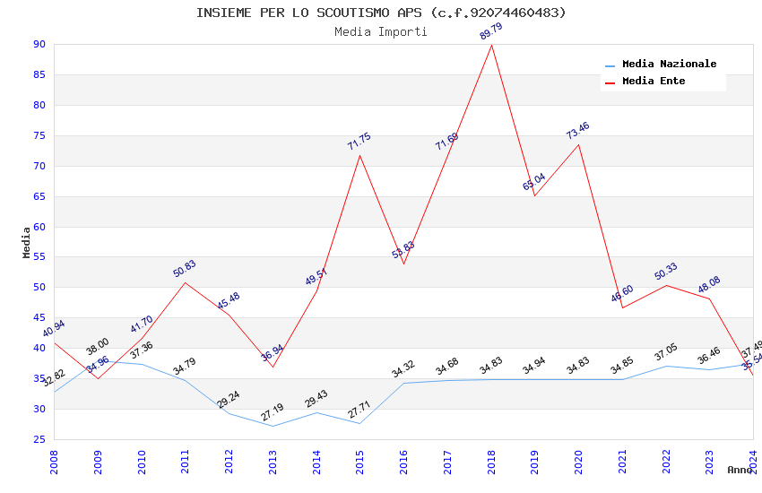 | Anno | Firme | Importi | Media | Naz. | Reg. | Prov. | Comu. |
