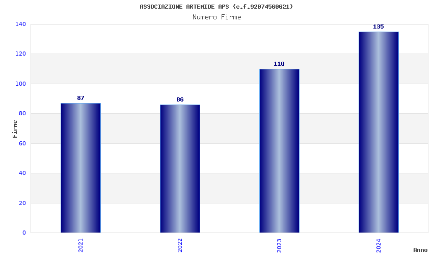 | Anno | Firme | Importi | Media | Naz. | Reg. | Prov. | Comu. |