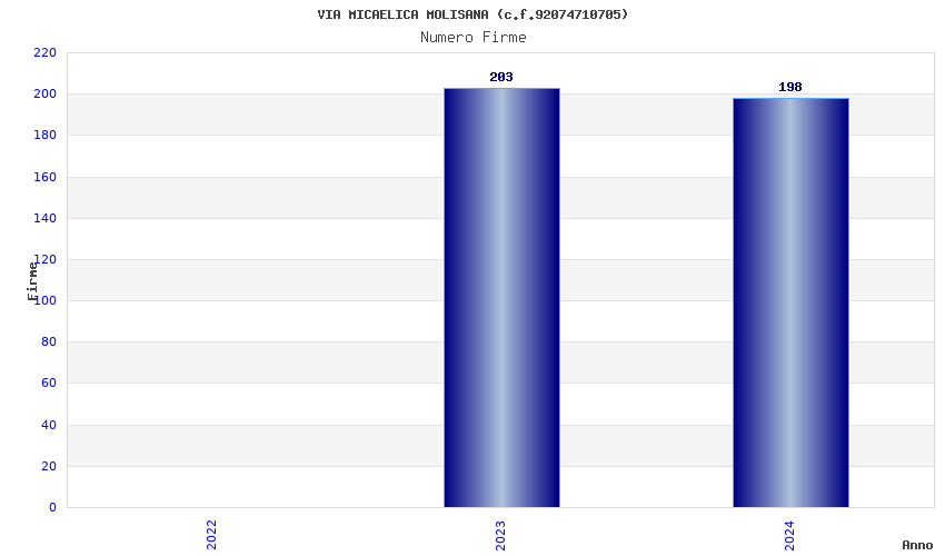 | Anno | Firme | Importi | Media | Naz. | Reg. | Prov. | Comu. |