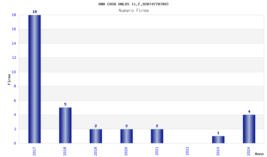 | Anno | Firme | Importi | Media | Naz. | Reg. | Prov. | Comu. |