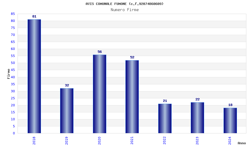 | Anno | Firme | Importi | Media | Naz. | Reg. | Prov. | Comu. |