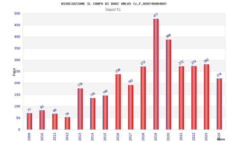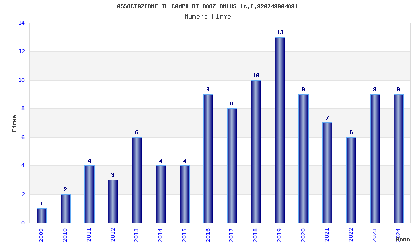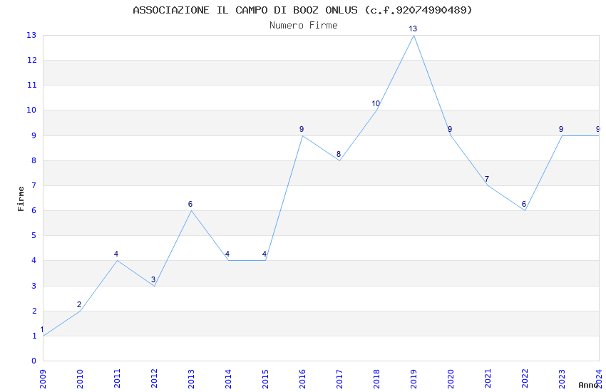 | 2019 | 13 | 477,18 | 36,71 | 46.470 | 2.896 | 160 | 138 |
