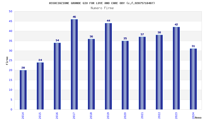 | Anno | Firme | Importi | Media | Naz. | Reg. | Prov. | Comu. |