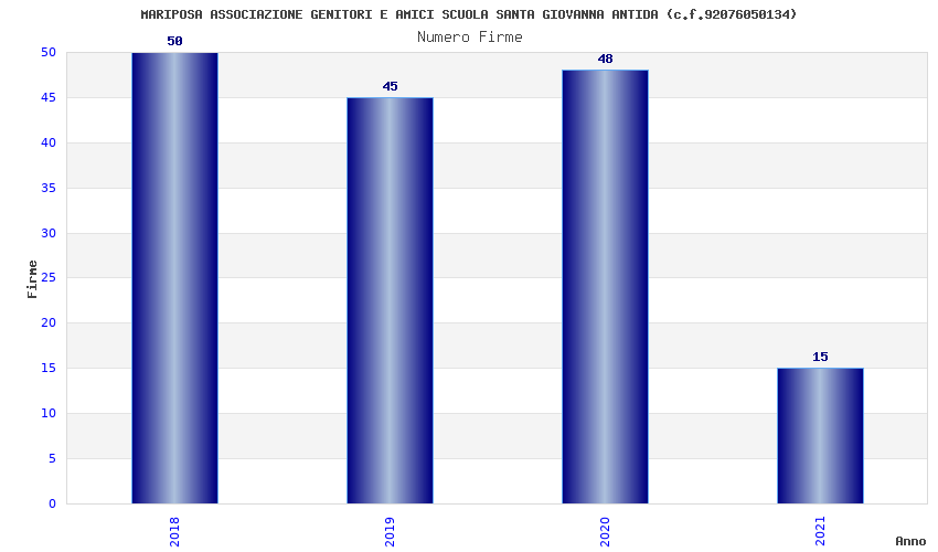 | Anno | Firme | Importi | Media | Naz. | Reg. | Prov. | Comu. |