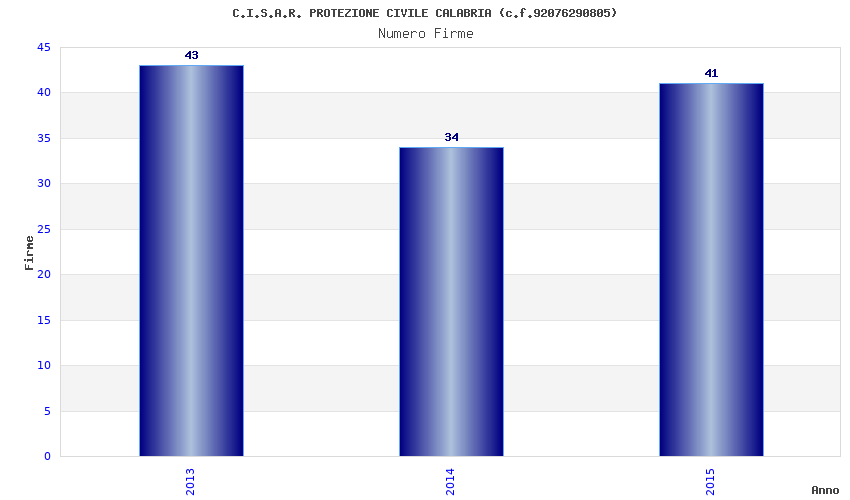 | Anno | Firme | Importi | Media | Naz. | Reg. | Prov. | Comu. |