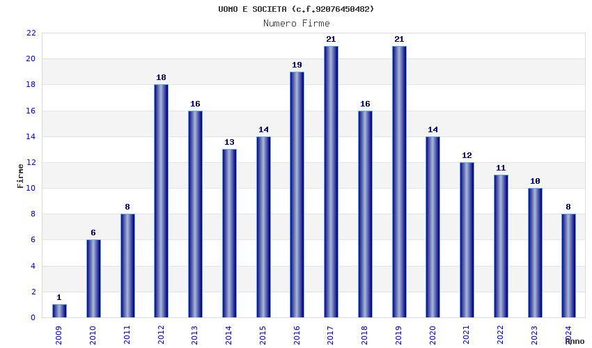 | Anno | Firme | Importi | Media | Naz. | Reg. | Prov. | Comu. |
