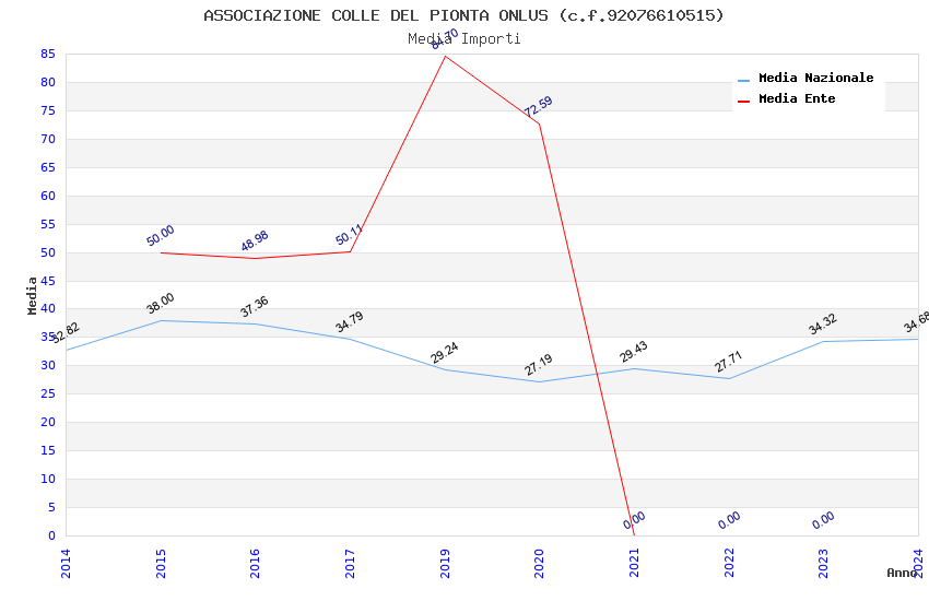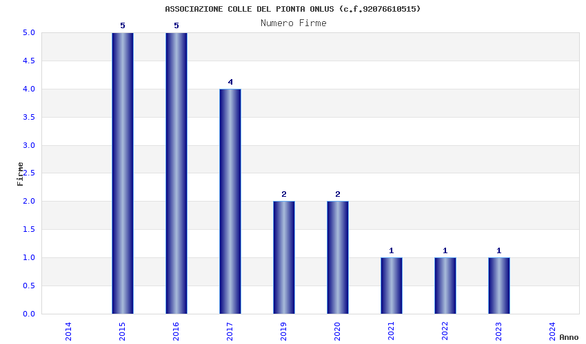 | Anno | Firme | Importi | Media | Naz. | Reg. | Prov. | Comu. |