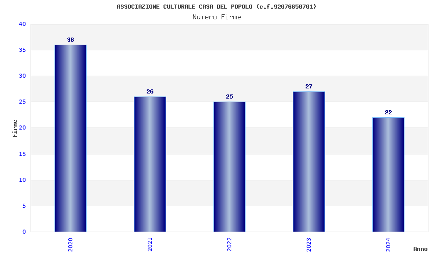 | Anno | Firme | Importi | Media | Naz. | Reg. | Prov. | Comu. |